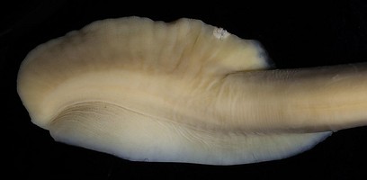 - Ventral trabeculate protective membrane: Narrow; membrane and trabeculae attach primarily to distal parts of ventromarginal sucker-stalks.