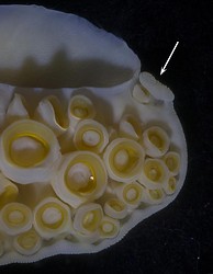- Dorsal view: The large central suckers (black arrows, below), and the smaller more marginal sucker stalks, are bathed along their dorsal and lateral margins in sea water as they emerge from the club core; a very peculiar arrangement. The dorsal edges of the central sucker-stalks, at their origin, are positioned further dorsally than those of the more dorsal suckers.